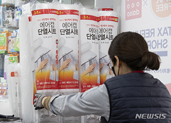 連日寒さが続いている26日午前、ソウル市内の生活用品売り場にて、従業員が暖房補助用品を整理している様子。