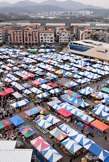 民族の大名節、旧正月(今年は1月22日)まであと三日と迫った19日、京畿道城南市の牡丹市場では、買い物に来た市民が祭祀(さいし)用の品などを買い求めていた。