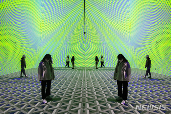 ソウル市鍾路区のアラアートセンターで17日午前、世界的なデジタルアーティスト、ミゲル・シュバリエの展示「デジタル・ビューティー」を観覧している市民たちが、メディアアートを体験した。
