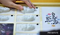 旧正月(今年は1月22日)を控えた13日、京畿道水原市長安区の亭子市場内にある餅店で、従業員らが五色のカレトック(細長い棒状の餅)をつくって包装準備をしていた。