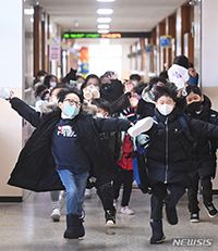 冬休みが始まった29日午前、明るい表情で下校していく新栄小学校(京畿道水原市霊通区)の児童。