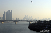 ソウルの大部分のエリアでPM2.5などの粒子状物質濃度が「不良」となった27日午前、ソウル市内にある東湖大橋の上から眺めたソウル中心部はかすんでいた。