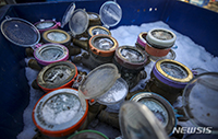 【NEWSIS】18日午前、ソウル市鍾路区の中部水道事業所孝子加圧場で、凍結により破損した水道メーターを整理する職員。ソウル市ではこの冬に入って初めて水道計器の凍結破損に対する「警戒」を発令した。凍..