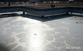 全羅北道全州市の徳津公園にある湖が19日、連日の厳しい寒さにより凍っていた。