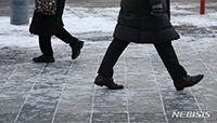 【NEWSIS】厳しい寒さが続いた16日午前、ソウル市鍾路区の光化門交差点で、ダウンジャケットなどしっかりと防寒対策をして凍った道を出勤する人々。