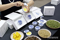 文化財庁韓国伝統文化大学と国立古宮博物館が7日、ソウル市鍾路区の国立古宮博物館本館の講堂で、伝統化粧品「和協翁主陶磁器エディション」を公開した。 英祖の娘で思悼世子の実姉である和協翁主の墓(京畿道南..