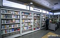 6日、ソウル市竜山区内の三角地駅にあるハヌリ文庫前を移動する市民たち。ソウル交通公社は、地下鉄の駅舎内にある書店との契約を延長しないことを発表した。契約は今月9日に満了となる。1986年、地下鉄内に..