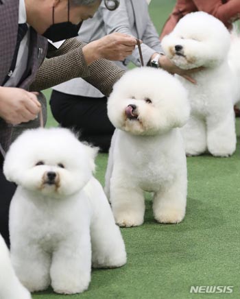 【NEWSIS】4日、ソウル市瑞草区のaTセンターで行われた「2022ソウルFCI国際ドッグショー」に出場した小犬たち。