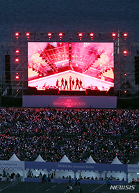2030釜山ワールドエキスポ(万博)誘致祈願BTSコンサート「Yet to Come in BUSAN」が開かれた15日、釜山市東区の釜山港国際旅客ターミナル野外駐車場に「ライブプレー」会場が用意され..