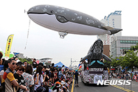 「2022蔚山クジラ祭り」が開かれている同市南区長生浦港一帯で15日、「クジラパレード」が行われた。