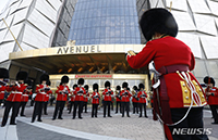 ロッテワールドタワー前で開かれた英国近衛兵軍楽隊の演奏