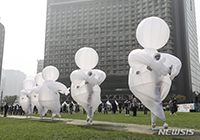 ソウル・ストリート・アート・フェスティバル(SSAF2022)開催まであと一日となった29日午前、ソウル市庁前でカンパニー・デ・キダム(Compagnie des Quidams)のメンバーが「ハーバ..