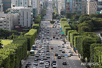 15日午前、四角形の街路樹が姿を現したソウル市瑞草区の盤浦大路一帯の様子。瑞草区によると、盤浦大路など総延長6.8キロの街路樹724本を四角形に剪定する作業を14日に完了したという。 街路樹を四角形..