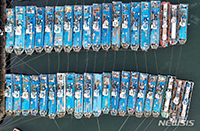 【NEWSIS】台風11号(アジア名:ヒンナムノー)が北上中の4日午前、済州特別自治道西帰浦市の西帰浦港に避難した漁船。気象庁によると、台風11号は6日午前、済州島を通過して南海岸に上陸するものと予..