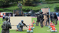 韓米民・官・軍・警・消防連合統合防衛訓練が開かれた29日、釜山市蓮堤区のアジアード補助スタジアムで、韓米両軍の将兵が都心テロを想定した実動訓練を行っているところ。