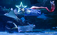 ソウル市江南区のCOEX AQUARIUMで26日、アクアリストが秋夕(中秋節。今年は9月10日)特集水中公演を行っているところ。