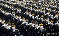 忠清北道忠州の中央警察学校大運動場で19日、同校の第310期卒業式が開かれ、卒業生らが尹錫悦(ユン・ソンニョル)大統領に向かって挙手の敬礼をしているところ。