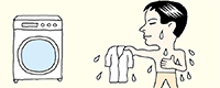 汗でぬれて、においがひどい服は、重曹や酢を少し入れてから洗うときれいになる。汗でぬれた服はすぐに洗濯した方がいい。