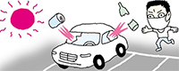 夏場の車内に清涼飲料水の缶やボトル、ライターなどを置いてはいけない。車内の温度が上がって爆発するおそれがある。