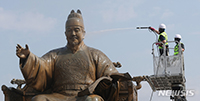 世宗大王像 2年3カ月ぶりの洗浄作業/ソウル