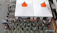 【NEWSIS】午前0時基準の新型コロナウイルス新規感染者数が2万6299人となり、月曜日基準の直近12週間で最多を記録した18日午前、ソウル市内の江南区保健所にある新型コロナ選別診療所(検査所)で..