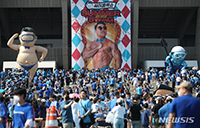 ソウル市松坡区の蚕室オリンピックメーンスタジアムで15日午後、「PSYびしょぬれショー」にやって来た観衆が入場を待っている様子。