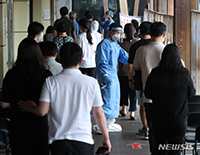 午前0時現在、新型コロナウイルスの新規感染者が3万7360人と集計され、再び感染が拡大している12日、ソウル市内の松坡区保健所選別診療所では、検査を受けるために列をなす市民らの姿が見られた。
