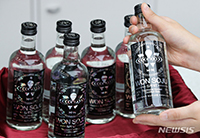 12日午後、ソウル市江南区のコンビニ「GS25」に陳列された「WON SOJU SPIRIT」の様子。「「WON SOJU SPIRIT」は、この日からGS25の売り場およそ1万6000カ所で販売され..