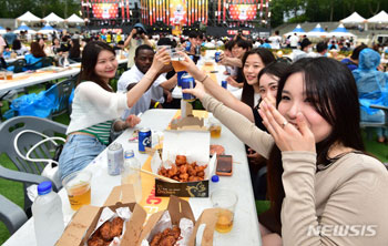 6日午後、大邱市達西区の頭流野球場で開催された2022年大邱チメク(フライドチキン&ビール)フェスティバルの会場を訪れた市民たちが、冷えたビールとアツアツのチキンを味わいながらイベントを楽しんだ。大..
