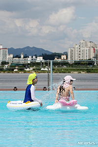 晴天となった1日午後、ソウル市永登浦区の楊花水遊び場では、子どもたちが水遊びを楽しんでいた。