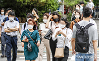 雨天となった27日午後、ソウル市中区の徳寿宮通りでは、市民が雨傘を差して行き交っていた。