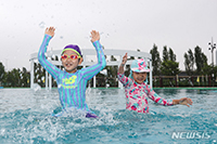 24日午後、ソウルの汝矣島漢江公園野外プールで水遊びに興じる子どもたちの様子。ソウル市漢江事業本部はこの日から8月21日まで、4カ所の漢江公園プール(トゥクソム・クァンナル・汝矣島・蚕院)と2カ所の水..