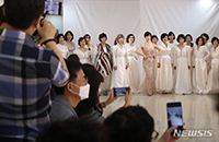 22日午後、ソウル市広津区の世宗大学テヤンAIセンターで開かれた「2022広津シニアモデル・ファッションショー」で、キャットウォークに登場したシニアモデルの様子。