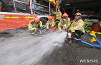 梅雨の序盤から集中豪雨が伴うと予想される中、大邱達城消防署の隊員らが20日午前、本格的な梅雨の季節を前に装備の点検を行っているところ。