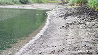 14日午前、光州市東区仙橋洞の仙橋貯水池では、底に沈んでいた木の枝が露わになっていた。