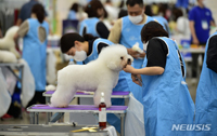 10日から「第19回大邱ペットショー」が開かれている大邱市北区のEXCOで、愛犬美容師資格検定およびコンテストが行われている様子。今回の行事は150社参加、300ブース規模で開催された。