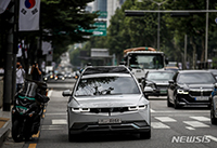ソウル市江南区のテヘラン路近くで9日午前、自律走行モビリティ・ロボライド試験サービス試乗イベントが行われ、自律走行可能な電気自動車(EV)が道路を走っていた。