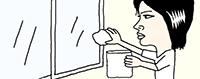 ぬるま湯で重曹を溶き、窓枠にかけた後、スポンジでふき取ると、窓枠についた汚れをきれいにすることができる。