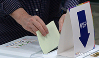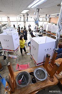 【NEWSIS】第8回全国同時地方選挙日(統一地方選挙)が行われた1日午前、京畿道光明市内の飲食店に設けられた所下洞第4投票所で投票をする有権者たち。