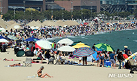 【NEWSIS】釜山市金井区で日中の最高気温が32.4℃を記録するなど、全国のほとんどの地域で気温が上がった22日、海雲台海水浴場を訪れた市民や観光客たち。