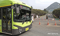 ソウル市鍾路区の大統領府(青瓦台)前で23日午前、01番路線バスが正門前を通りスゴていた。01番バスは青瓦台開放イベントにより新設されたもので、忠武路駅→東大入口駅→南山ソウルタワー→市庁前→国立故..