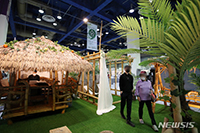 19日午後、ソウル市江南区のCOEXで開かれている大韓民国造景・造園博覧会を訪れた人々が、造景作品を見て回っている様子。