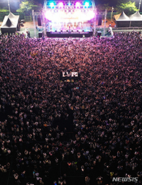 【NEWSIS】19日夜、京畿道竜仁市内の韓国外国語大学グローバル・キャンパスで、歌手PSY(サイ)が学園祭ライブを行った。