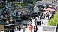 初夏の陽気となった4日午後、ソウル市中区の清渓川では、ランチタイムを終えた多くの市民が休みを取っていた。