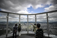 雨が止んだ29日午後、ソウル市松坡区のロッテワールドタワー展望台「ソウル・スカイ」では、訪れた市民が楽しいひとときを過ごしていた。