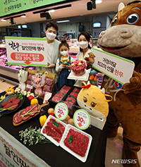 韓牛自助金管理委員会が28日午前、ソウル市内のロッテマート・ソウル駅店で「2022年家庭の月・韓牛割引販売イベント」を開催した。来月8日まで実施される今回のイベントでは、1等級以上の韓牛を全国455..