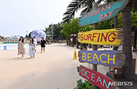 28日午後、京畿道竜仁市のカリビアンベイのビーチカフェ「マール・カリブ(Mar Caribe)」では、訪れた人々が飲み物を手に楽しいひとときを過ごしていた。