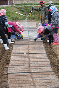 本格的な営農期を迎えた22日、京畿道華城市の京畿道農業技術院では、関係者らが研究用の育苗作業を行っていた。