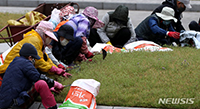 【NEWSIS】春雨が上がりかかった13日午前、ソウル市瑞草区の大検察庁前で、雑草を取る作業員たち。