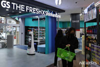 ソウル市広津区のGS THE FRESH広津華陽店で13日午後、店を訪れた人々が買い物をしている様子。GSリテールは新韓銀行と協力し、広津華陽店を「デジタル革新店舗1号店」へと脱皮させた。従来のATM..